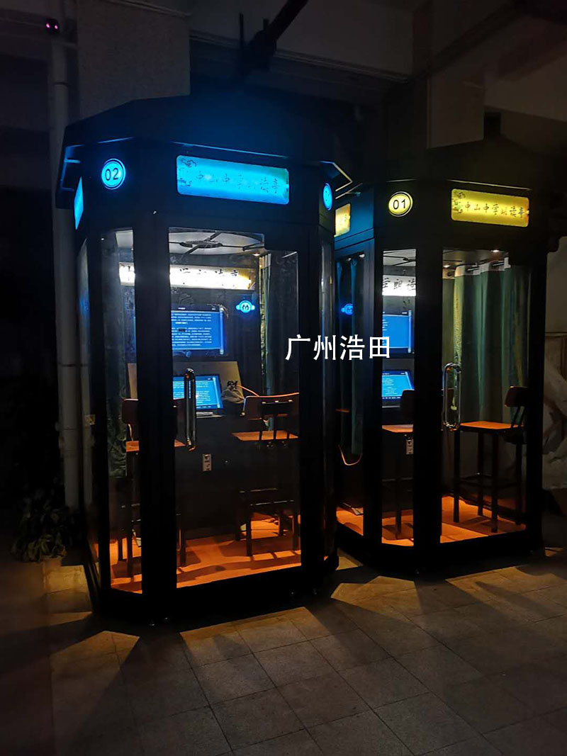 浩田,一家集數碼軟件開發,生產制造為一體的現代化高科技綜合性企業。工廠主要生產機器設備有自助迷你ktv、朗讀亭、傾訴亭、移動琴房、辦公室隔音亭、專注商場|電影院|學校等場景一站式硬件+軟件開發。