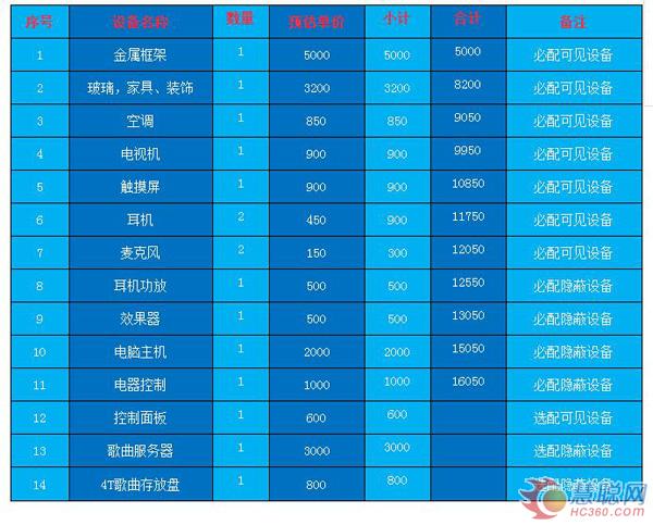 以下是家里安裝迷你ktv各個(gè)配置價(jià)格。